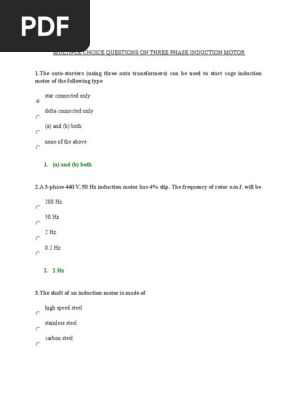 Multiple Choice Questions On Three Phase Induction Motor Electric Motor Electric Power