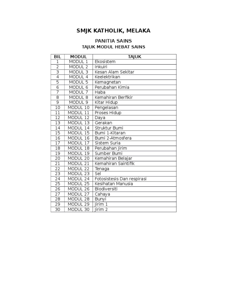 Pemetaan Modul Hebat Sains F1 F2 F3 My School