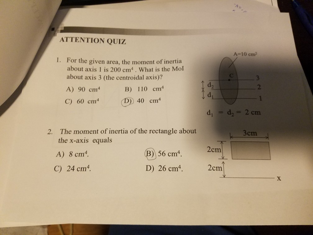 Solved Incorrect See The Moment Of Inertia Calculations F Chegg Com