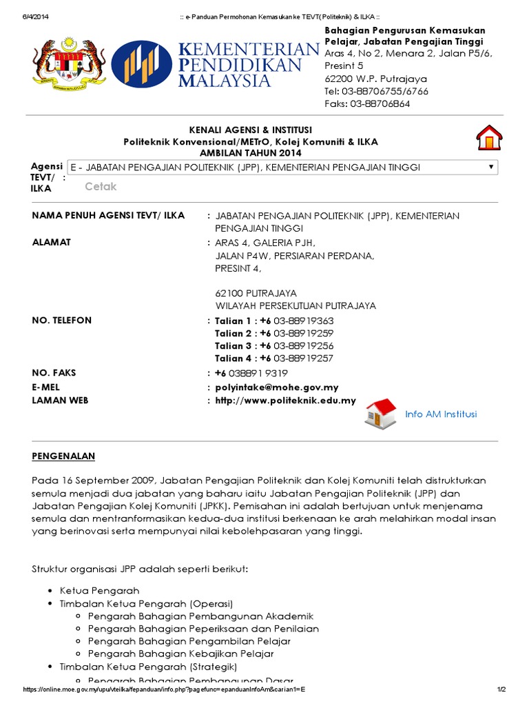 E Panduan Permohonan Kemasukan Ke Tevt Politeknik Ilka