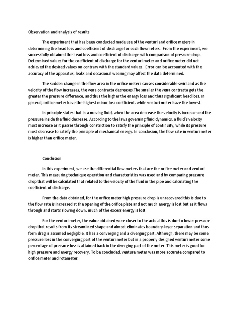 Observation And Analysis Of Results Conclusion Recommendation Flow Measurement Pressure Measurement