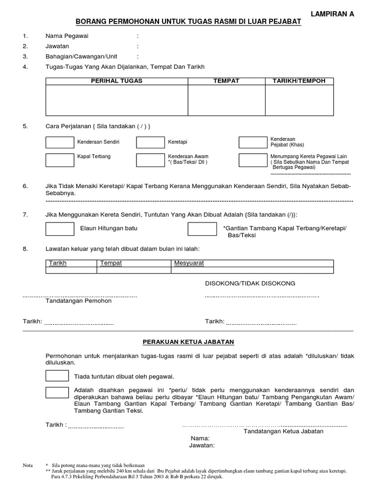 Borang A Tugas Rasmi Luar Pej Pegawai