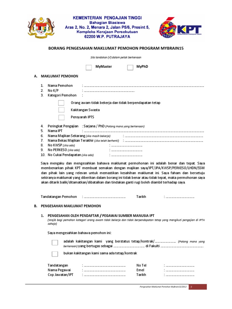 Borang Pengesahan Maklumat Pemohon Program Mybrain15