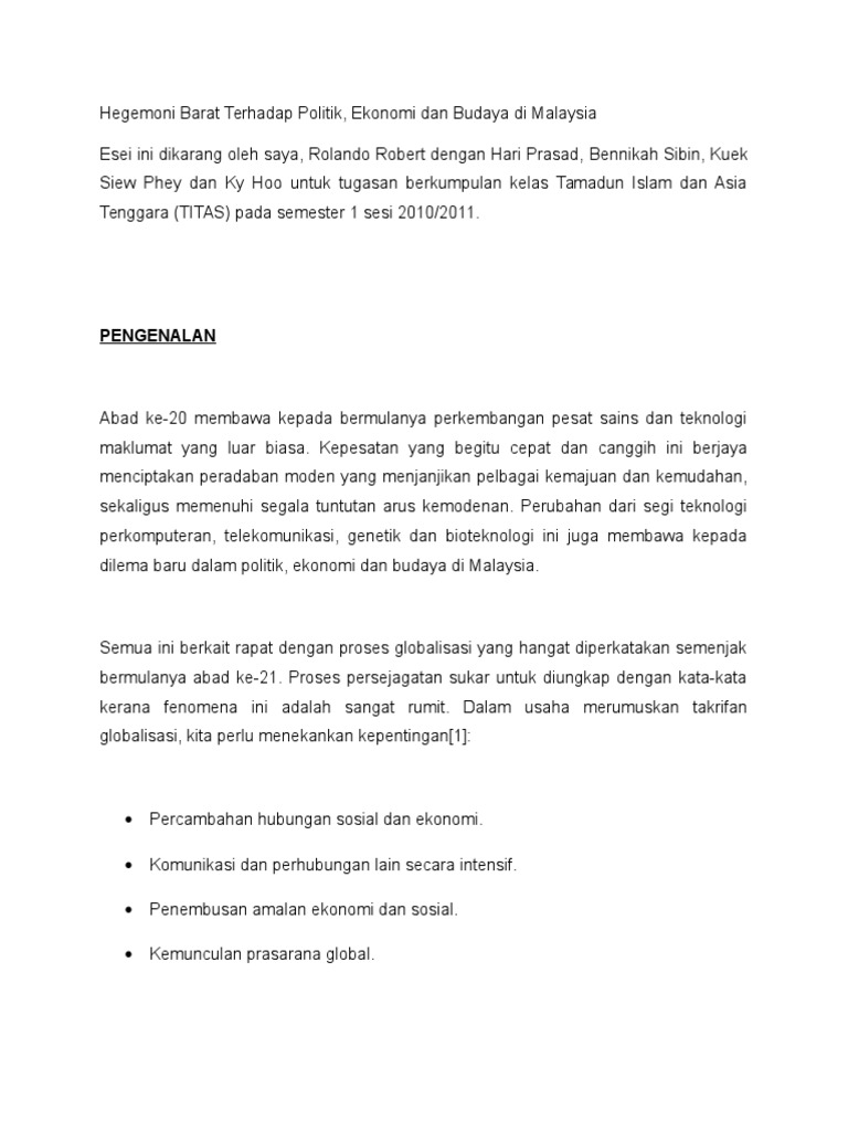 Hegemoni Barat Dan Globalisasi Realiti Dan Cabaran Fazkuruni