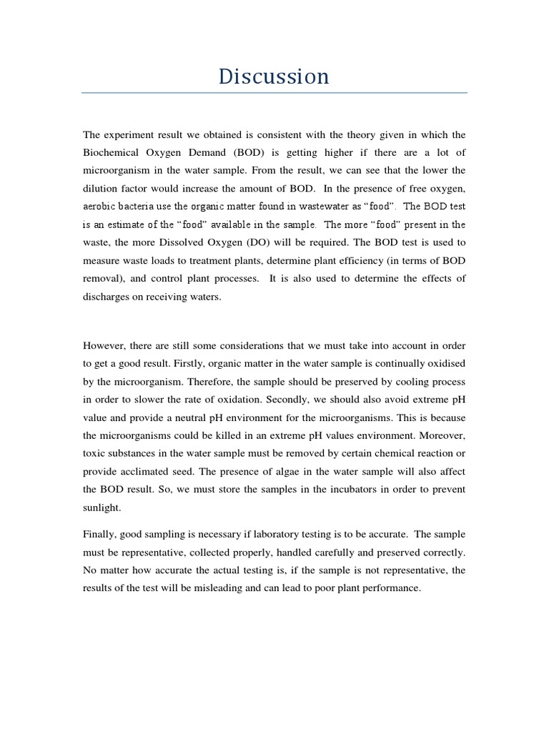 Chemical oxygen demand discussion. While the bod test is performed by using a population of bacteria and other microorganisms to attempt to duplicate what would happen in a natural stream over a period of five days the cod test uses a strong chemical oxidizing agent potassium dichromate or potassium permanganate to chemically oxidize the organic material in the. Most applications of cod determine the amount of organic pollutants found in surface water e g. The chemical oxygen demand cod test is used widely to estimate the amount of organic matter in wastewater. Biochemical oxygen demand or bod measures the amount of oxygen consumed by microorganisms in decomposing organic matter in stream water.