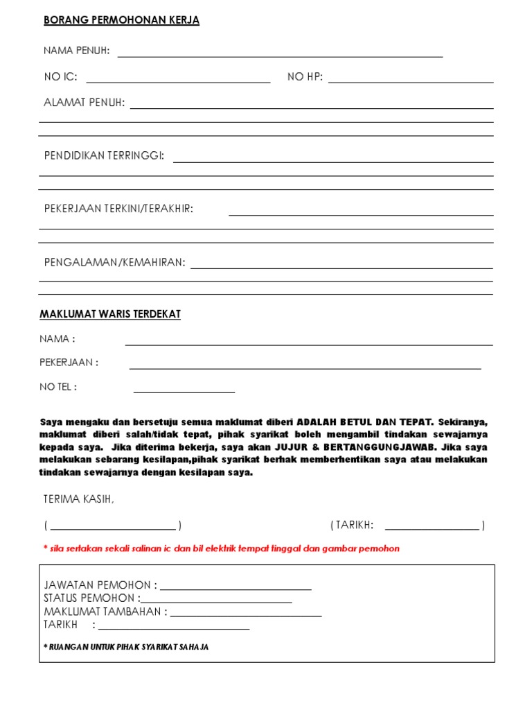 Borang Permohonan Kerja Word