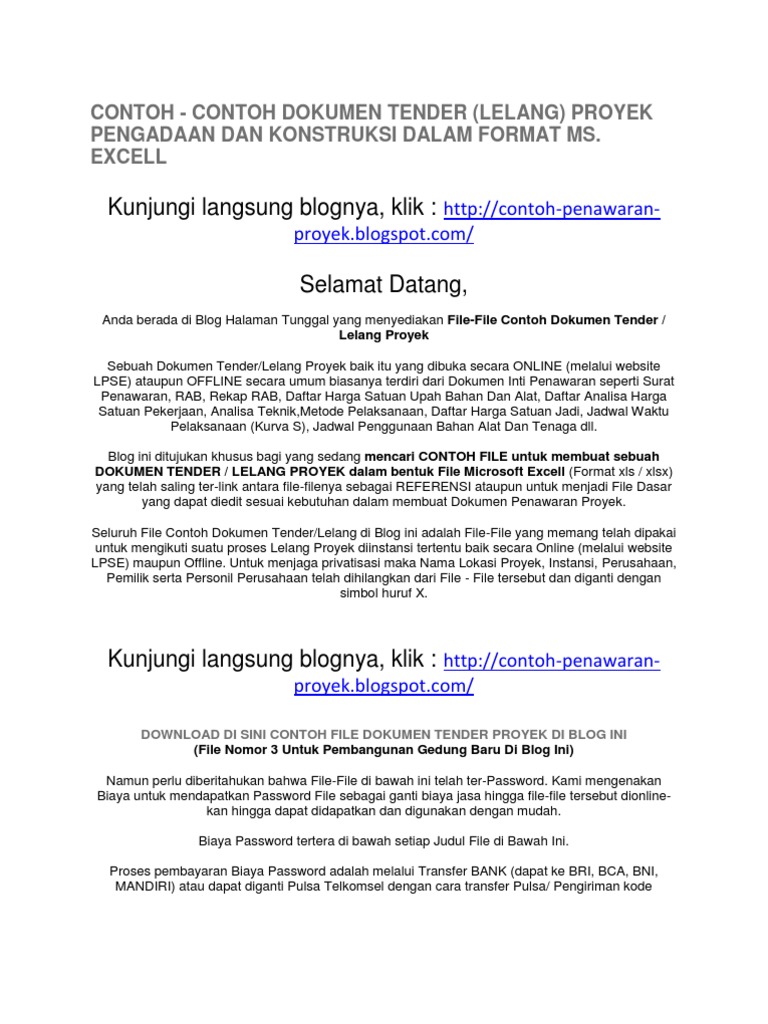 Pdf Dokumen Tender Proyek Deny Asyurhok Academia Edu