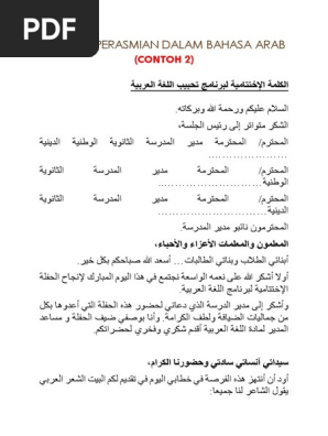Contoh 2 Ucapan Perasmian Dalam Bahasa Arab