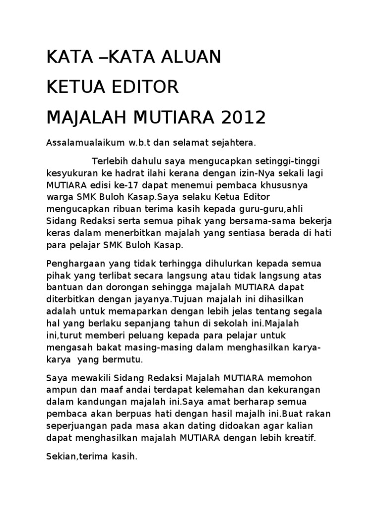 Contoh Kata Kata Aluan Untuk Majalah