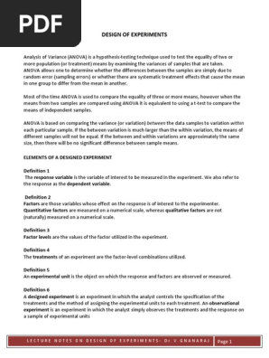 Lecture Notes On Design Of Experiments Analysis Of Variance Experiment