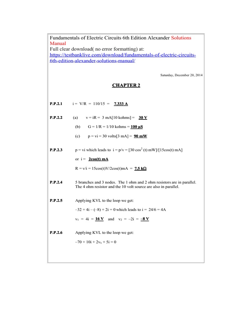 Solutions Manual For Fundamentals Of Electric Circuits 6th Edition By Alexander Ibsn 0078028221 Studocu