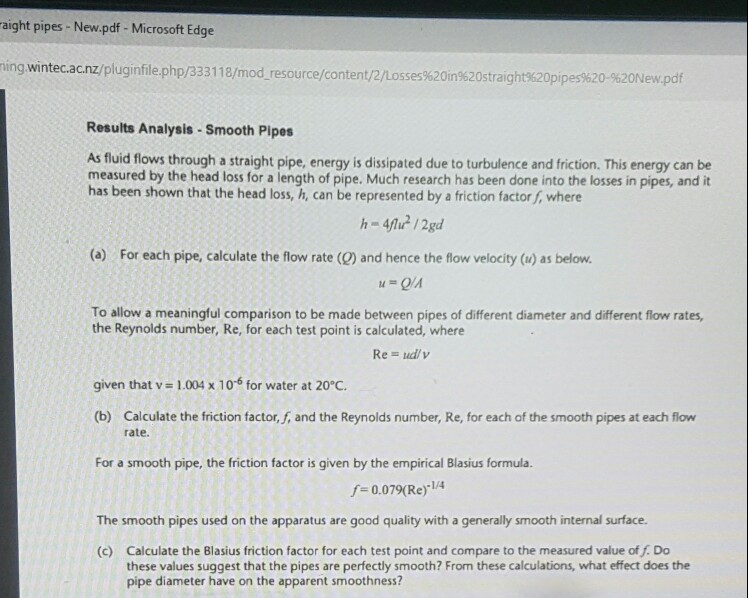 Solved Hi I Am Doing Lab Report Of Head Loss In Straight Chegg Com