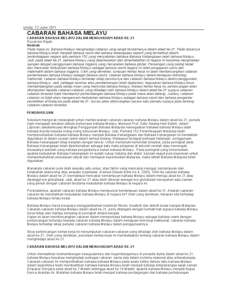 Doc Masa Depan Dan Cabaran Bahasa Melayu Unitkoko Skbp Academia Edu
