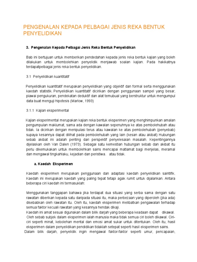 3 Pengenalan Kepada Pelbagai Jenis Reka Bentuk Penyelidikan