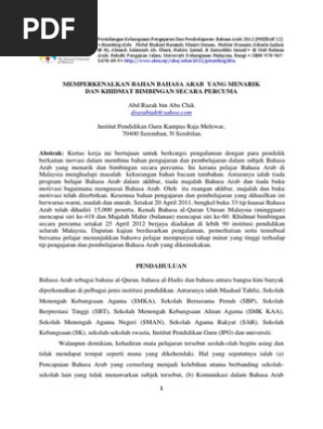 Pdf Permasalahan Dalam Pengajaran Bahasa Arab Di Malaysia