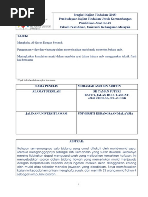 Kajian Tindakan Meningkatkan Kemahiran Membaca Perkataan Bahasa Arab Dan Ayat Al Quran Pdf Document