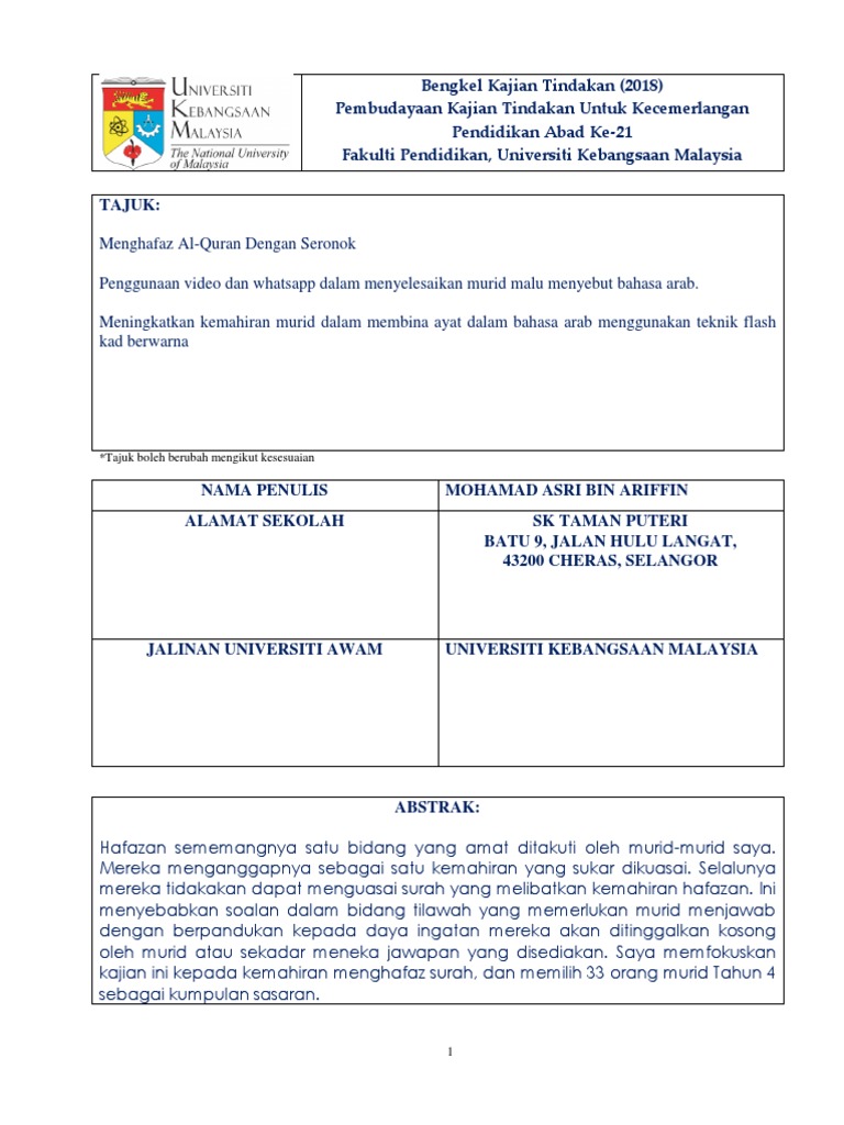 Kajian Tindakan Bahasa Arab Tahun 2018