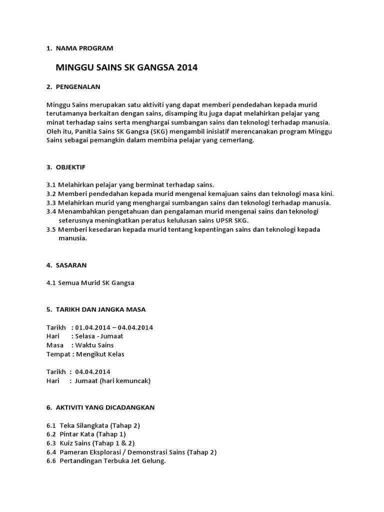 Contoh Kertas Kerja Minggu Sains