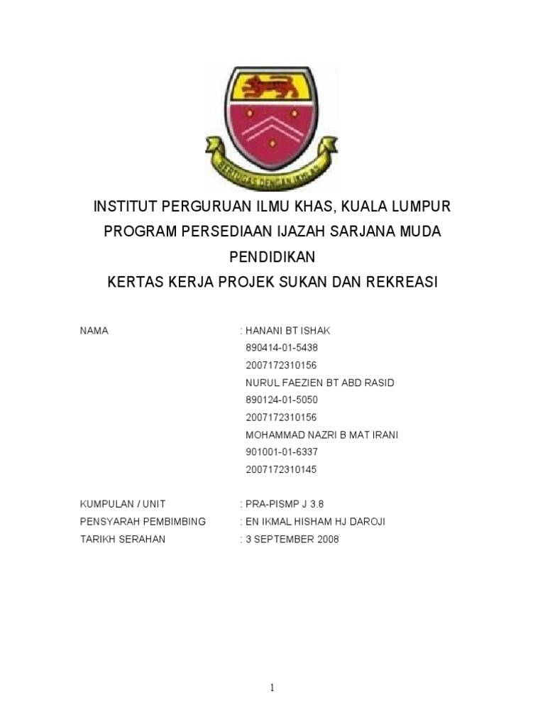 1099 Contoh Kertas Kerja Sukan Rekreasi