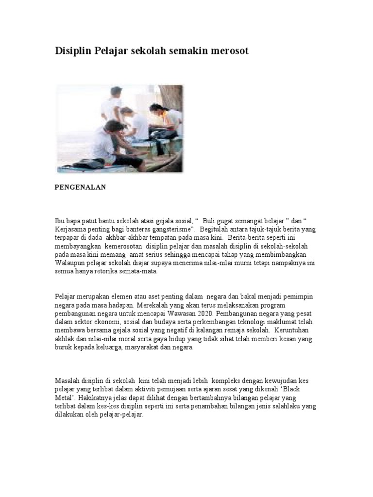 Disiplin Pelajar Sekolah Semakin Merosot Docx Document