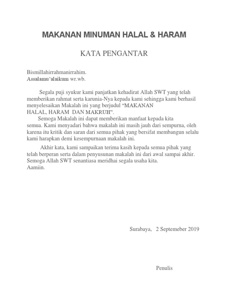 Doc Makalah Agama Islam Makanan Dan Minuman Haram Docx Weny Novianti Academia Edu