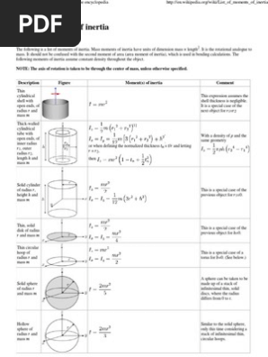 Mass Moment Of Inertia Formulas For Different Shapes Pdf
