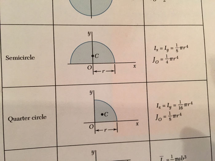 Centroid Area Moments Of Inertia Polar Moments Of Inertia Radius Of Gyration Of A Half Circle