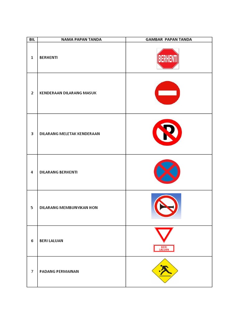 Kepentingan Mematuhi Papan Tanda Jalan Raya Jenis Papan Tanda Papan Tanda Isyarat Larangan