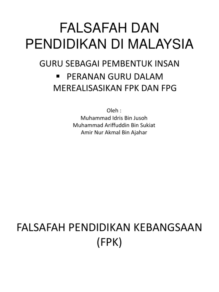 Falsafah Dan Pendidikan Di Malaysia Peranan Guru Merealisasikan Fpk Fpg