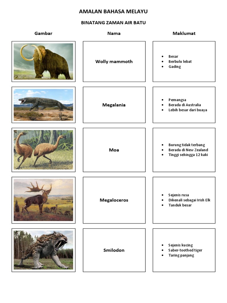 Gambar Haiwan Pada Zaman Air Batu