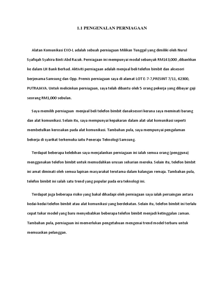 Doc Contoh Rancangan Perniagaan Shahrul Kamal Ramli Academia Edu