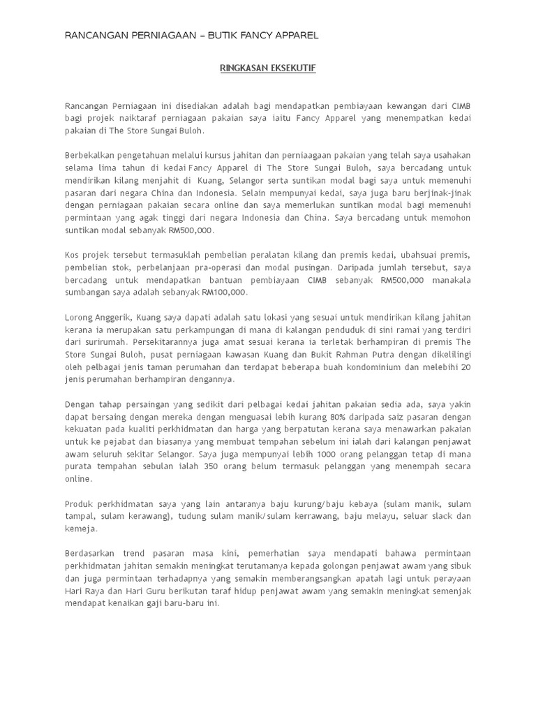 Hi ada sesiapa bole tolong bagaimana mau sediakan rp untuk perniagaan kedai telekomunikasi atau kedai telefon. Amir82 2 tue 22 apr 2014 3 49pm sy brcdang mmbuka 1 perniagaan telefon bimbit dan reload secara stokis. Rancangan perniagaan ini disediakan adalah bagi mendapatkan pembiayaan kewangan dari cimb bagi projek naiktaraf perniagaan pakaian saya iaitu fancy apparel yang menempatkan kedai pakaian di the store sungai buloh. Kedudukan kedai ini di belakang tidak nampak dari jalan utama perniagaan ini sebenarnya tidak perlu terletak di hadapan.