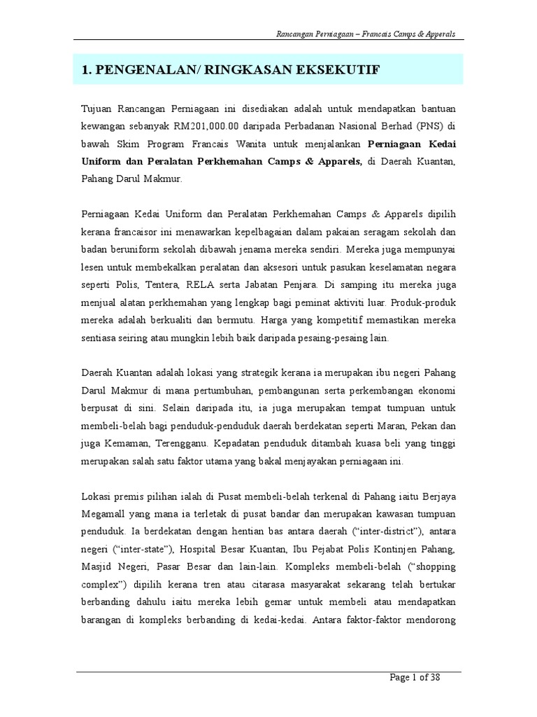 Jabatan pentadbiran memiliki sebuah laptop sebuah printer telefon bimbit dan sebuah mesin fax. Tujuan penyediaan rancangan ini dan pihak yang memerlukannya. Tambahan modal juga diperlukan bagi. Contoh rancangan perniagaan disediakan oleh.