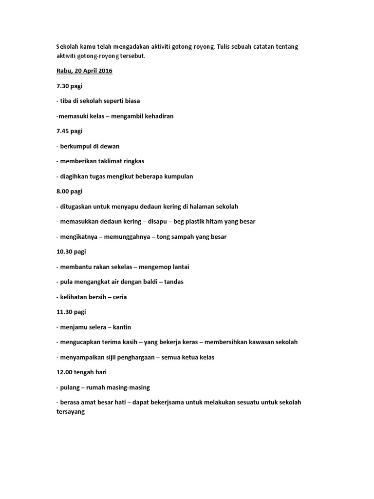 Karangan Berformat Catatan Harian Aktiviti Gotong Royong Karangan Berformat Catatan Cikgugoh