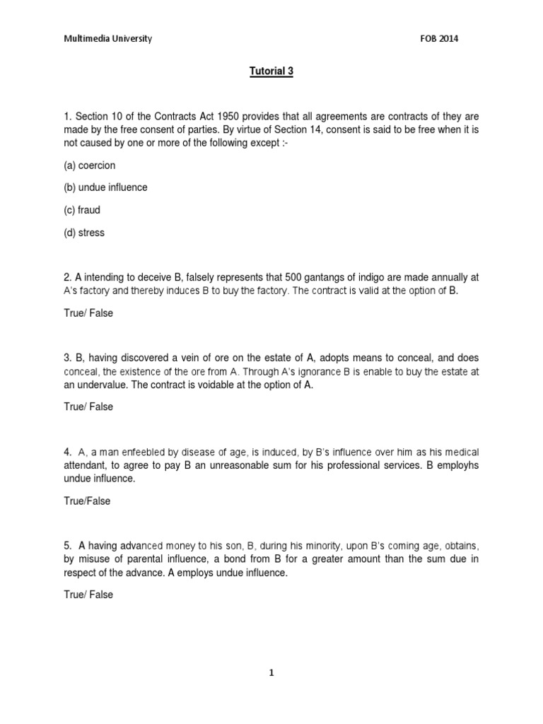 Tutorial 3 Consideration Misrepresentation