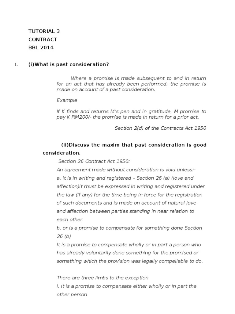 Tutorial 3 Blaw Qs And Answers Consideration Debt