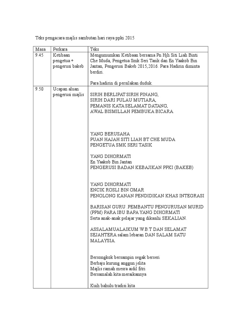 Teks Ucapan Pengacara Majlis Sambutan Hari Raya 2015 Doc