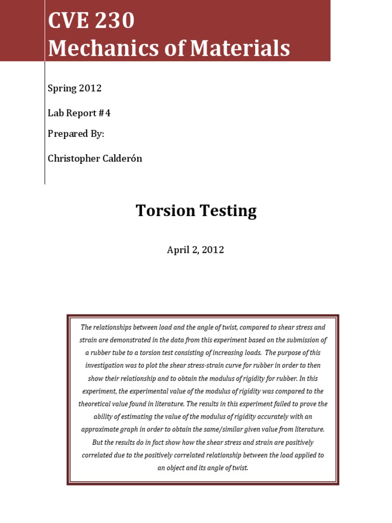Lab 9 Torsion Test Lab Report Engr 2332 Studocu
