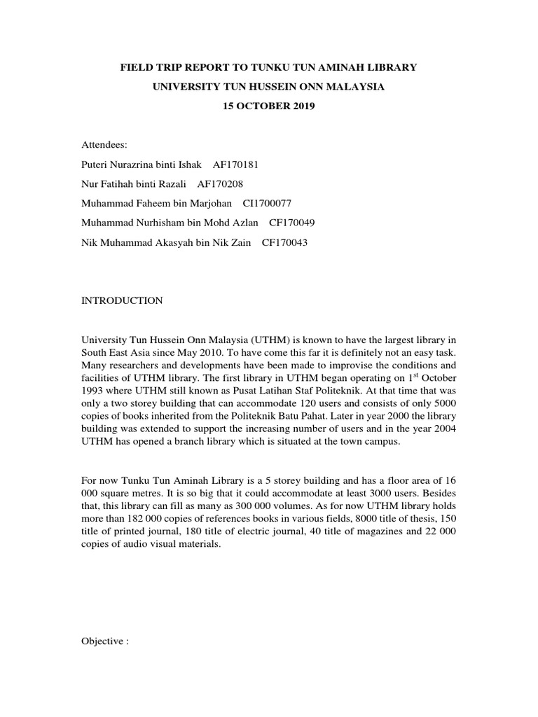 Field Trip Report To Tunku Tun Aminah Library Libraries Library And Museum