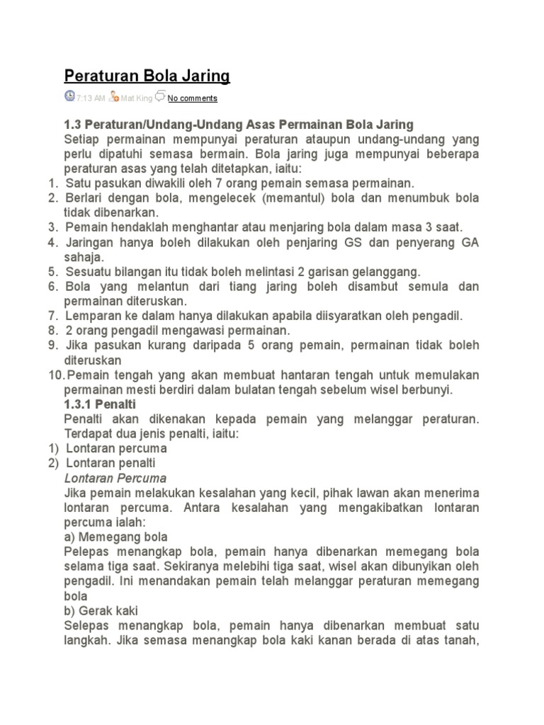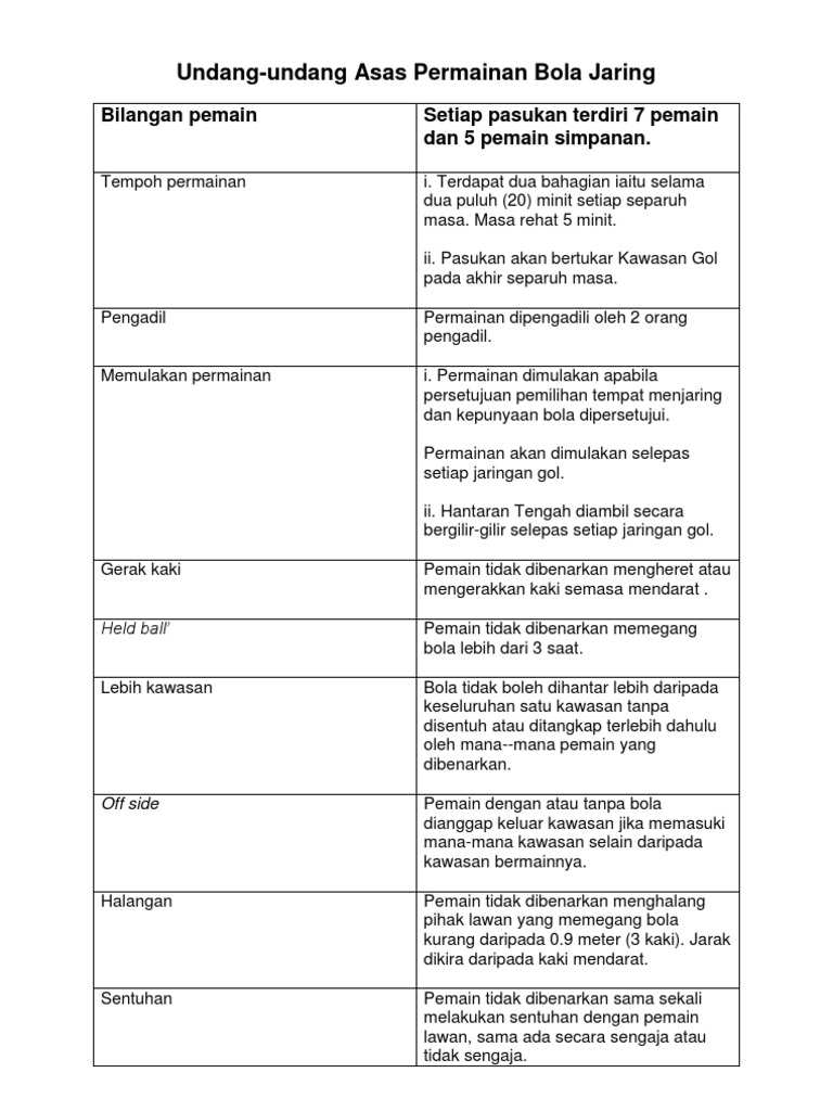 Bola Jaring Peraturan Dan Undang Undang Permainan 1 Asas Peraturan Permainan