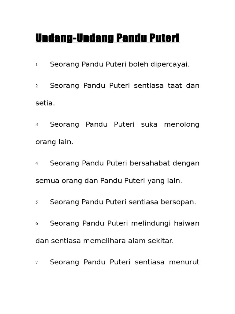 Persetiaan Cogan Kata Dan Undang Undang Pandu Puteri